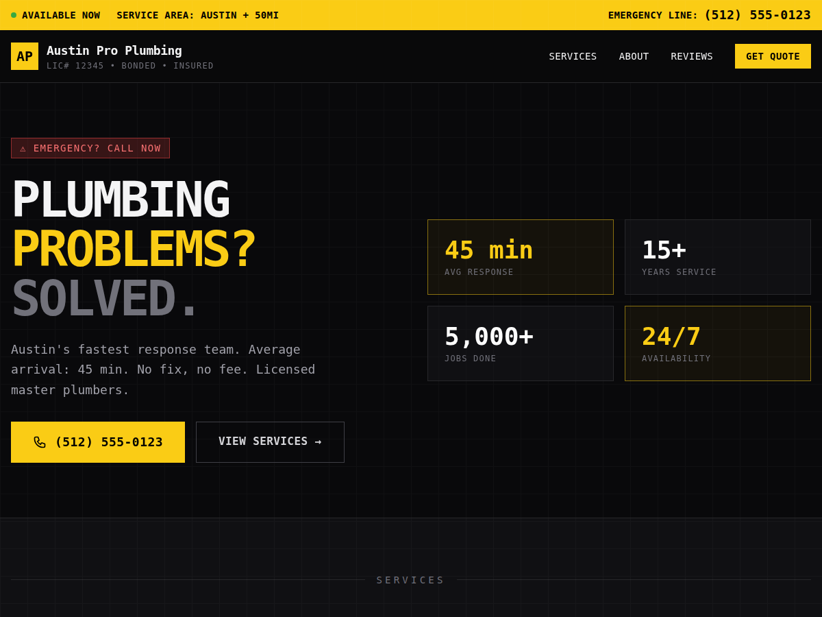 PlumbingHVACRoofingElectricalLandscapingAuto RepairDentalCleaningPest ControlGarage DoorSaaSFitnessPlumbingHVACRoofingElectricalLandscapingAuto RepairDentalCleaningPest ControlGarage DoorSaaSFitness